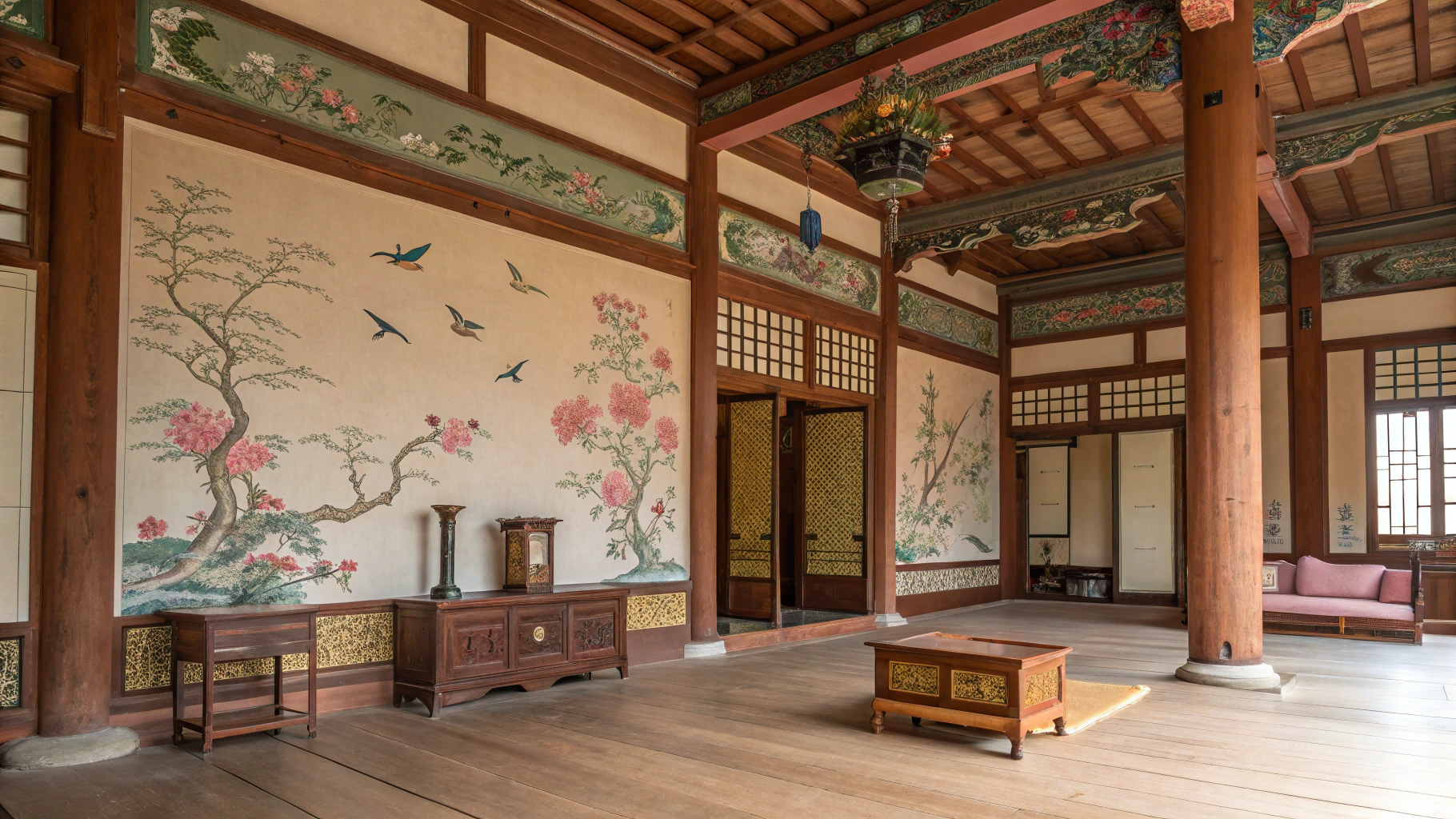 이번 교태전 특별개방의 또 하나의 백미는 ‘건순각’ 내부 공개입니다. 평소에는 출입이 통제되던 교태전의 부속 건물로, 전통 한옥의 내부 구조와 궁중 건축의 미학을 직접 확인할 수 있는 첫 기회입니다. 또한 교태전 대청에는 조선 시대 궁중 회화를 재현한 부벽화 모사도 두 점이 전시됩니다. 앵무새와 원숭이 가족이 담긴 그림은 상징성과 정서적 감흥을 함께 전달하며, 회화로 보는 조선 왕실의 예술 세계를 간접 체험하게 해줍니다.