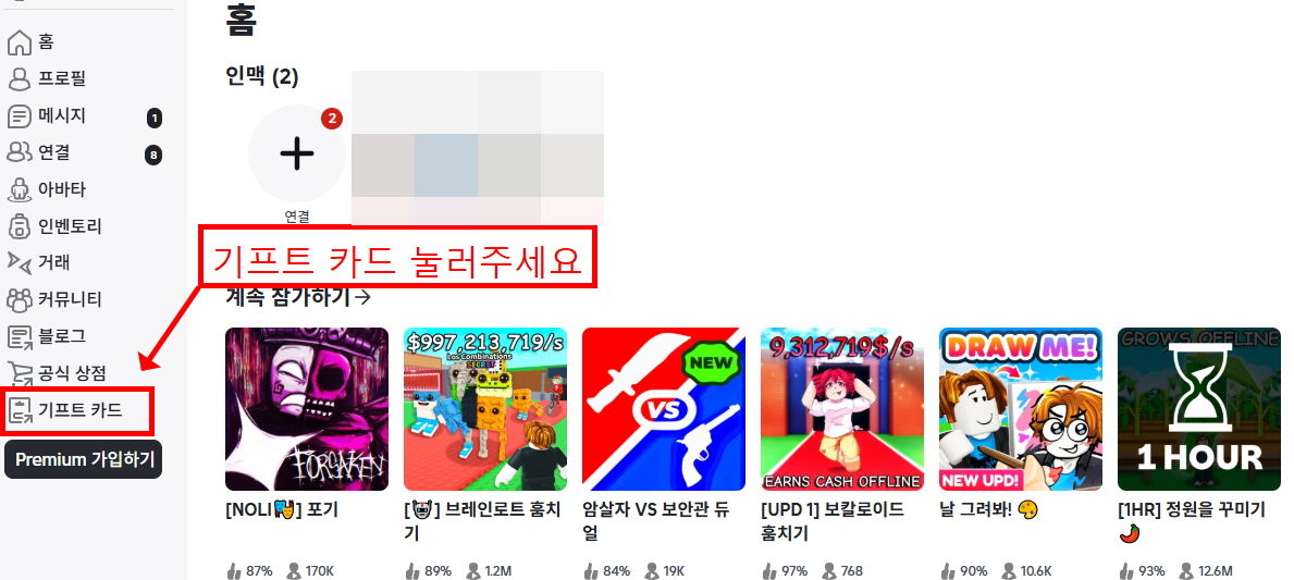 로블록스 기프트카드 등록