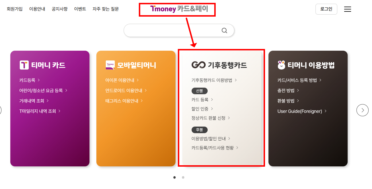 ✔️ 실물카드는 티머니 카드&페이 홈페이지에서 기후 동행 카드 등록 필수 (등록하지 않으면 환불 불가)
