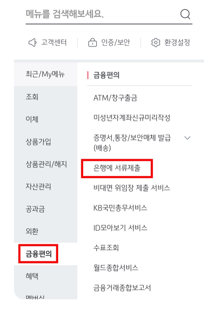 | 국민은행, 신한은행, 우리은행 | 앱의 [전체 메뉴] → [편의 서비스 또는 대출] → [비대면 서류 제출] |