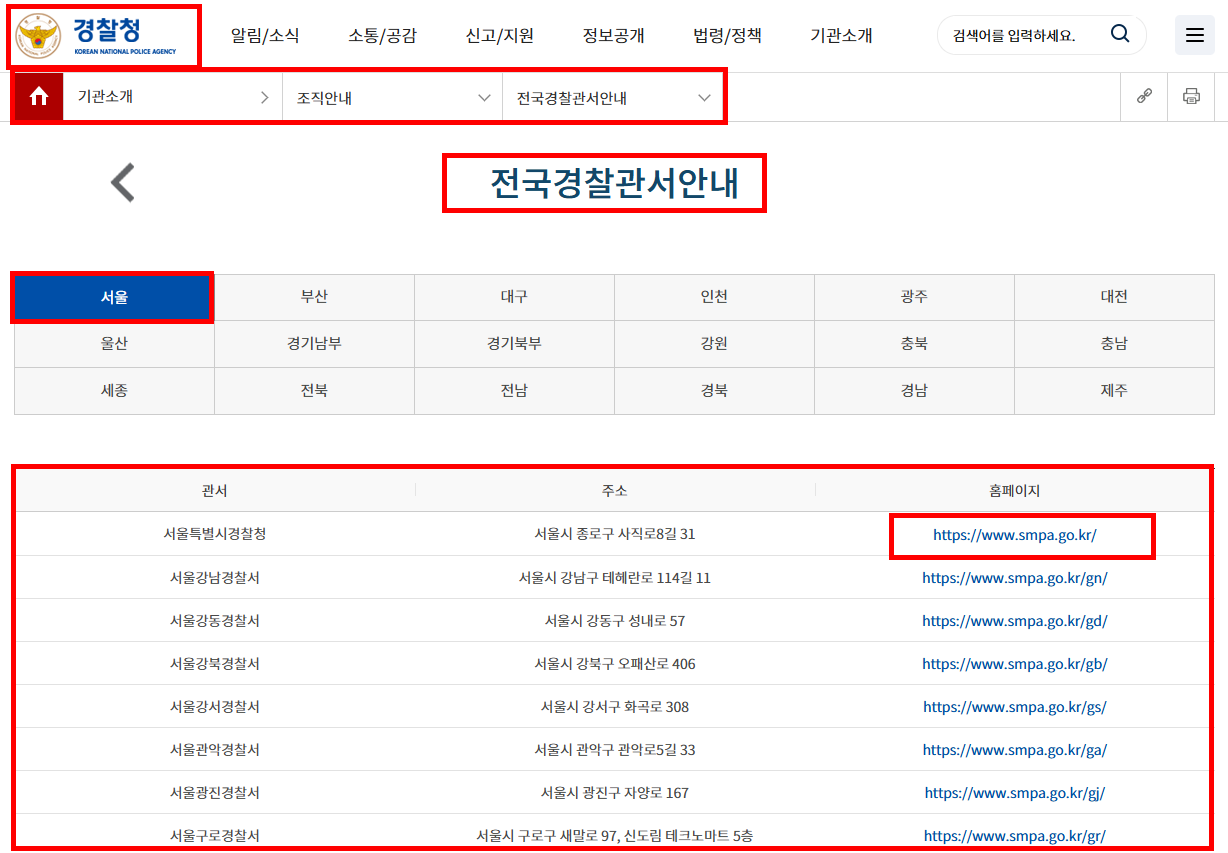 경찰청, 경찰서, 주소, 공식 홈페이지 | 가장 기본적이고 정확한 정보 제공 | 경찰청과 경찰서 주소·홈페이지 확인이 필요한 경우 |