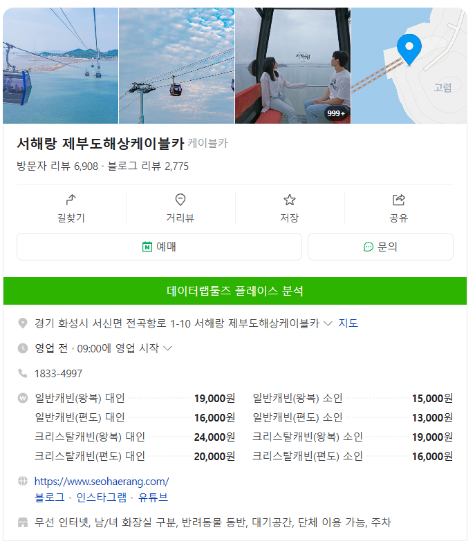 서해랑 제부도해상케이블카 정보