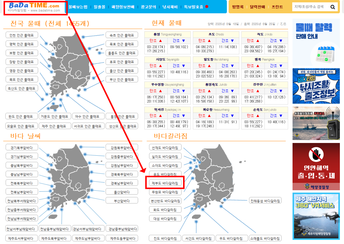 ✅ 바다타임(앱/웹) → 바다갈라짐 실시간 조회