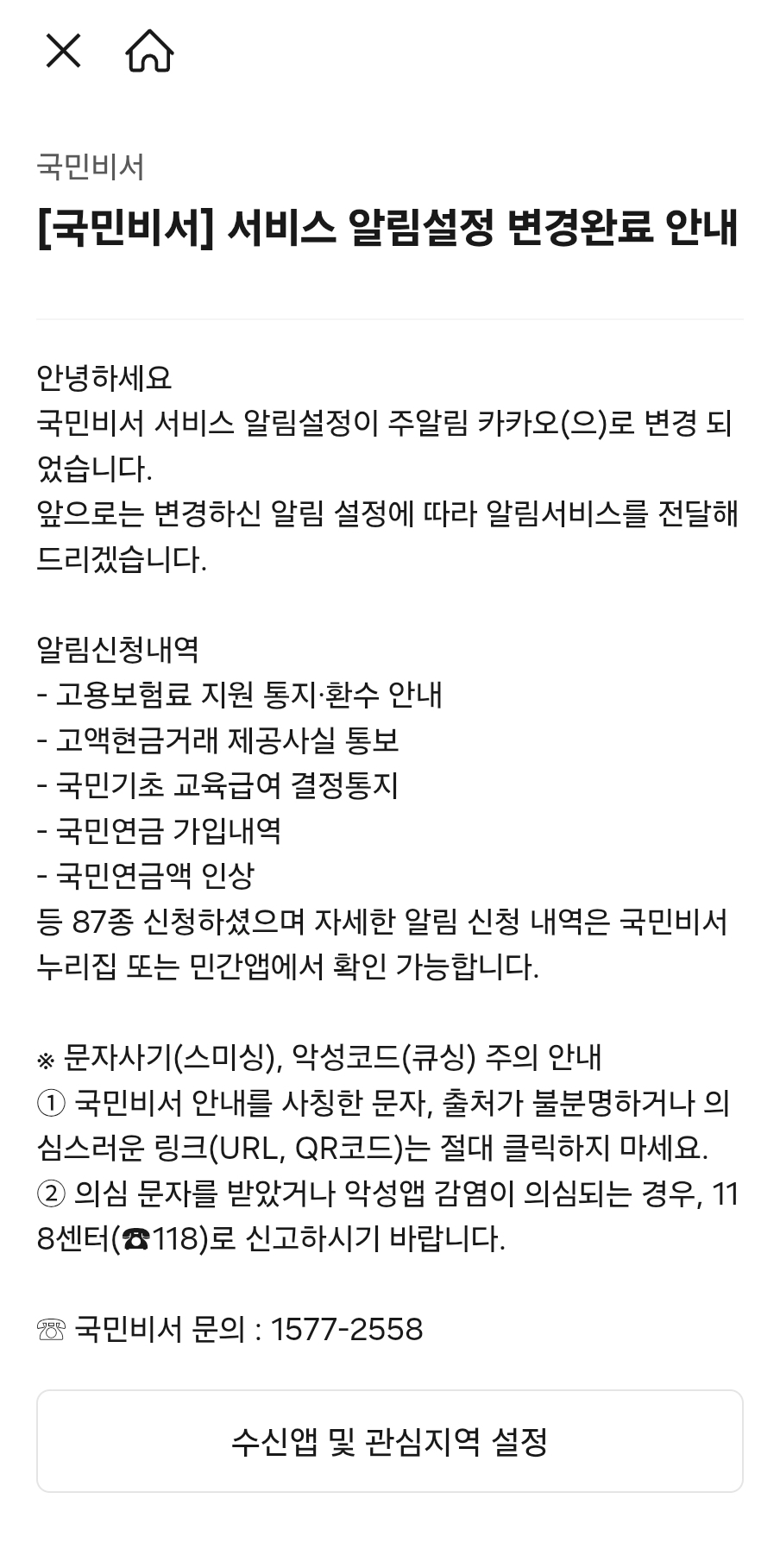 Q 국민비서 신청하면 무조건 카카오톡으로만 알림 받게 되나요?