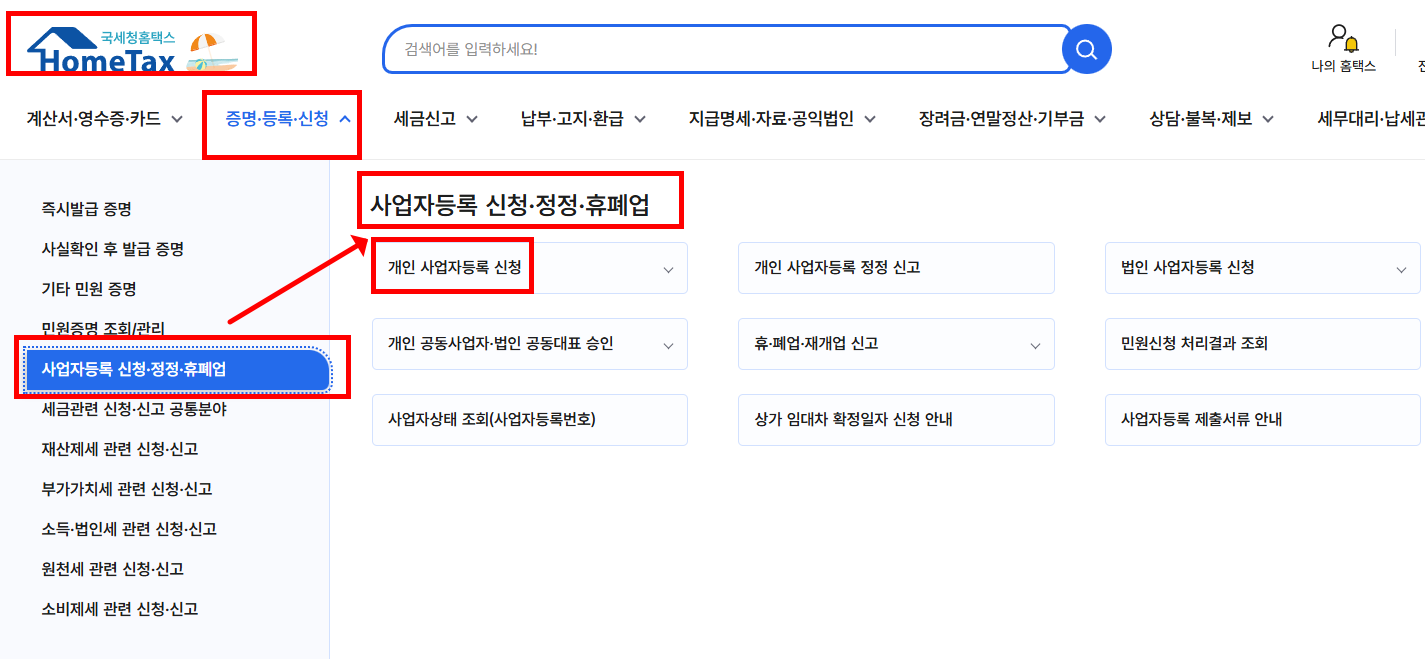 🎯 홈택스 사업자 등록 신청 단계