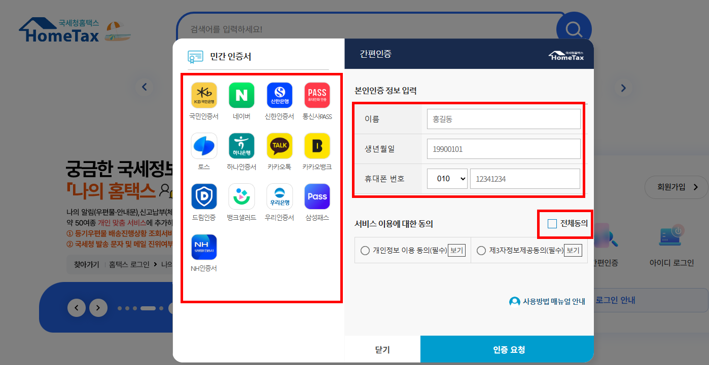 | 홈택스(웹사이트) | 인증서 로그인 필요 / PC로 신청 |